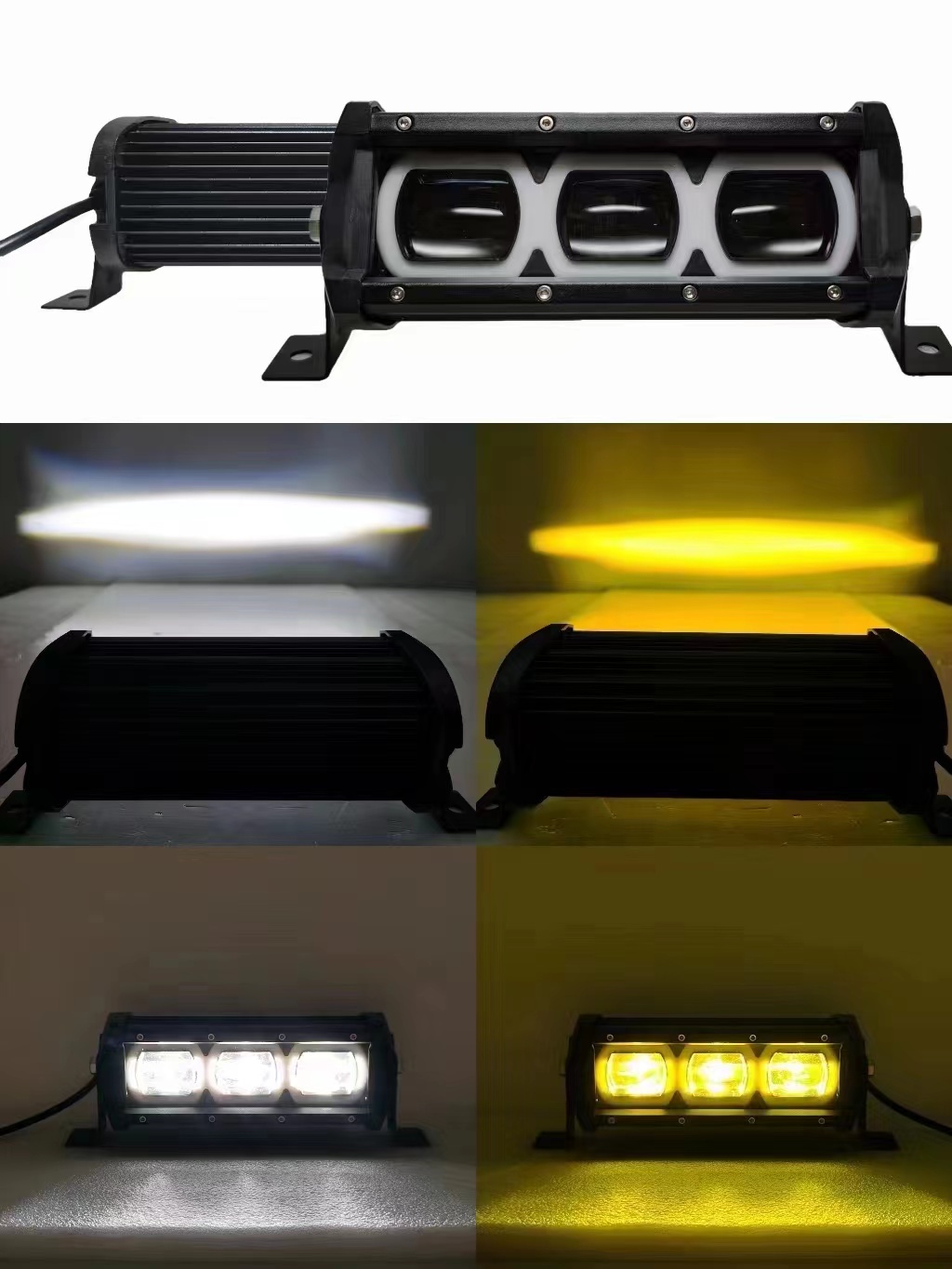 Automobile LED work light, long strip light, yellow and white light band daytime running light, ultra-thin single-row lens light