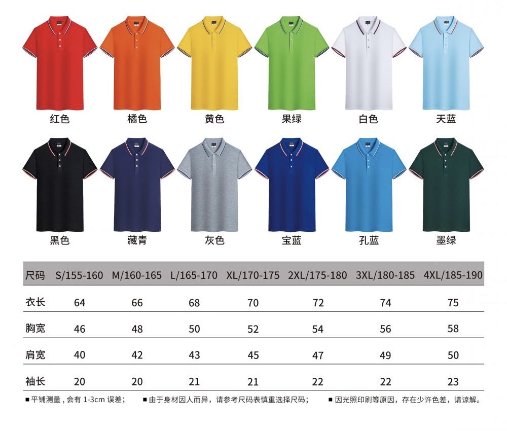 所标价格为4XL以内光版的价格,也就是没有印logo的价格。 来图定做,订制班服 ,加印LOGO,图案,公司标志等 根据logo尺寸都须另收相应费用。 更大尺寸价格、具体颜色等请咨询客服 。量大优惠!