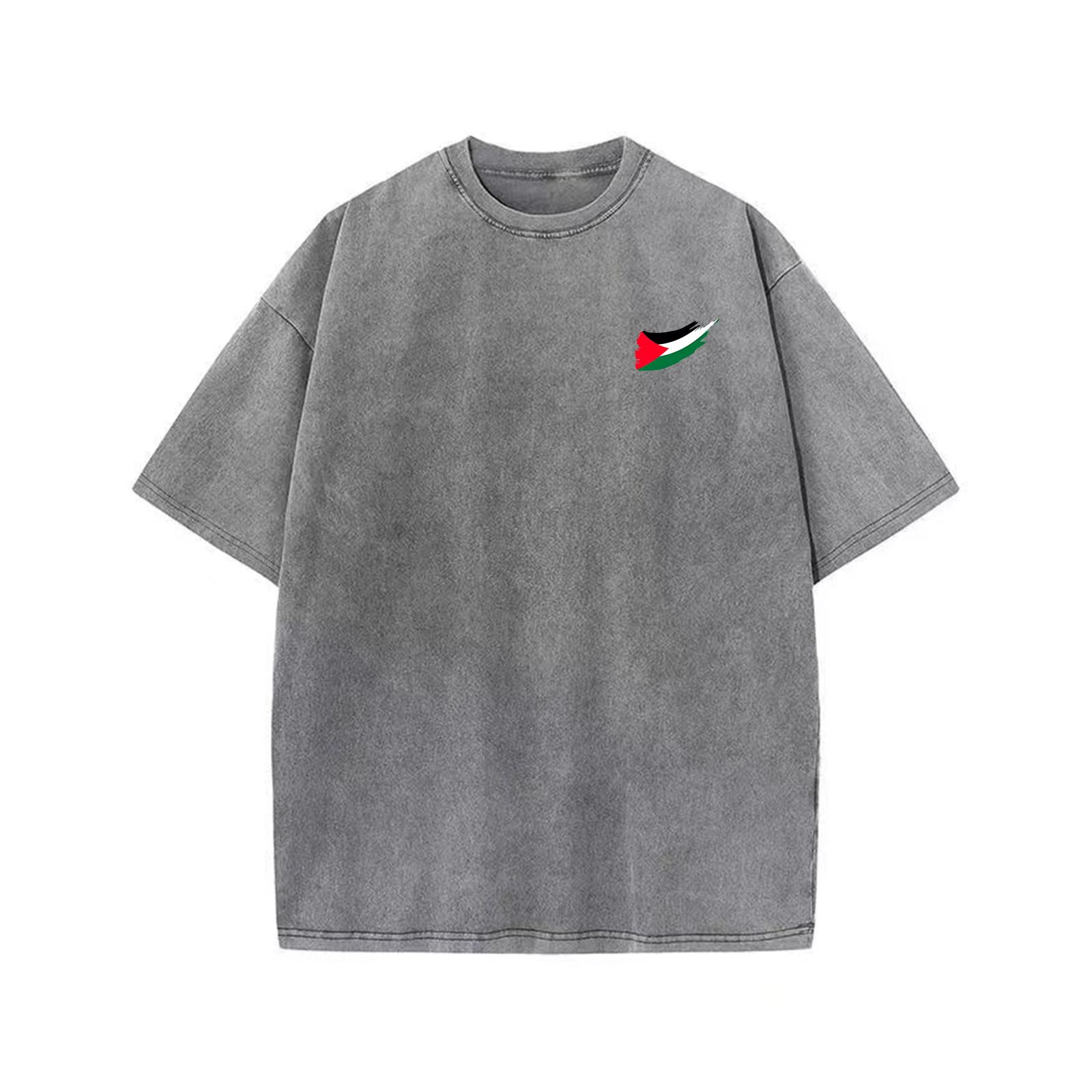 Customized cross-border 230g/㎡ round-neck T-Shirt, washed cotton, high-end and comfortable. Multiple colors available for customization. Men's, women's, couple's wear, European and American short-sleeved trend