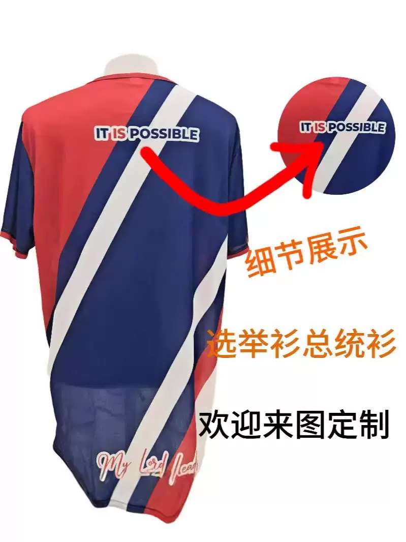 "引领变革,从衣开始!专为追求卓越与差异的总统竞选者打造,我们提供高端定制竞选服装服务。每一针每一线,都凝聚着对胜利的渴望与对细节的不懈追求。量大更有超值优惠,让您的竞选之路更加闪耀夺目。无论是激情澎湃的演讲,还是深入人心的走访,我们的竞选服都能让您以好的状态亮相,赢得选民的心。立即行动,定制专属竞选风采,开启胜利之门!"