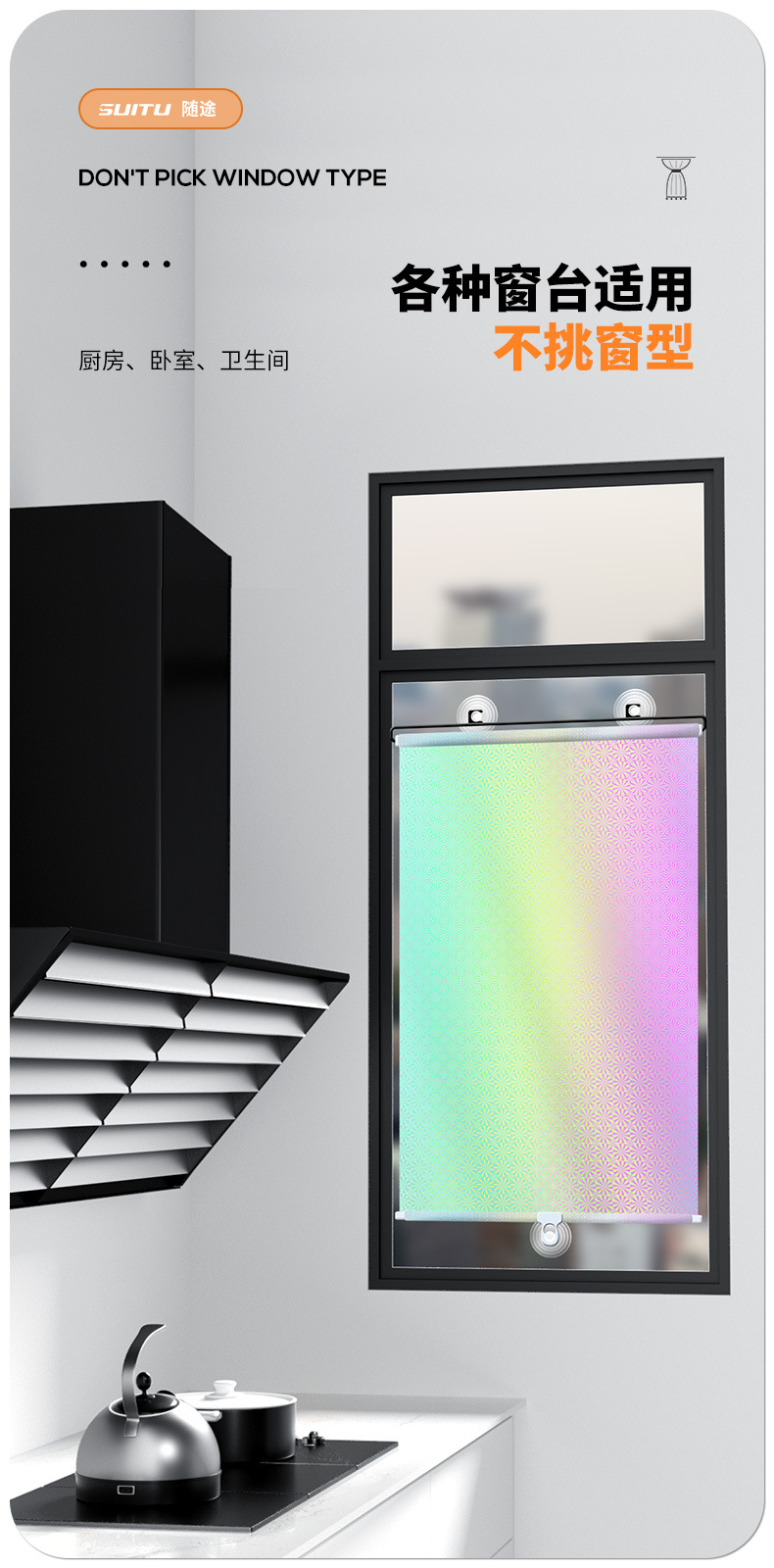 Soft gauze curtain roll curtain double shading lift office toilet kitchen waterproof roll-pull type perforation-free shutter curtain