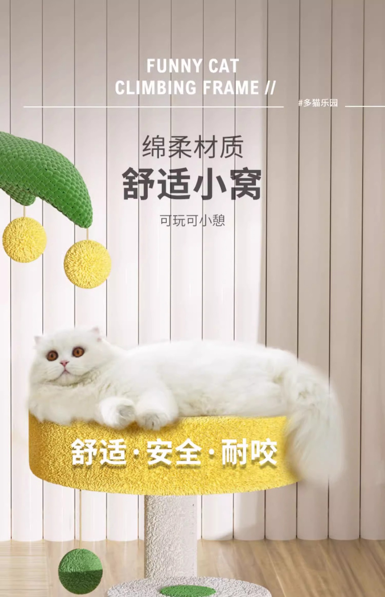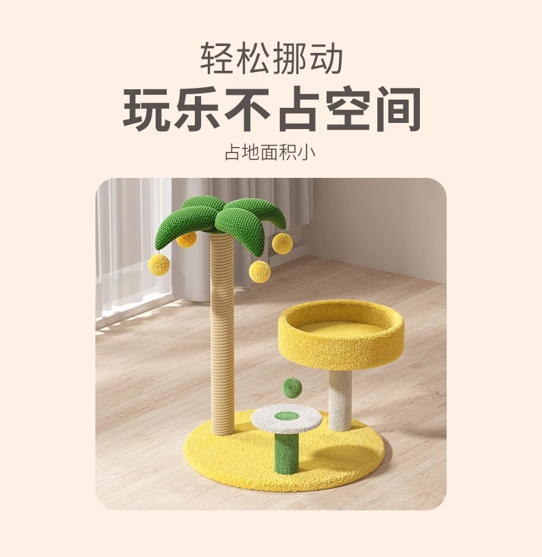 The cat scratch-board and cat bed are integrated, wear-resistant and non-flaking. The solid wood cat climbing frame takes up little space. The sisal pad and cat scratch-pad are cat toys
