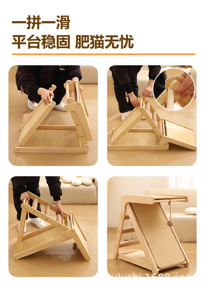Cat scratch board, cat bed integrated, wear-resistant and non-flaking, solid wood cat climbing frame, non-occupying space, sisal pad, cat jumping platform, cat toy