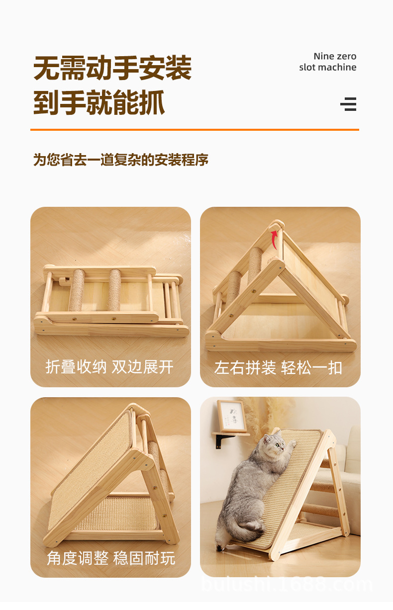 The cat scratch-board and cat bed are integrated, wear-resistant and non-flaking. The solid wood cat climbing frame takes up little space. The sisal pad and cat scratch-pad are cat toys