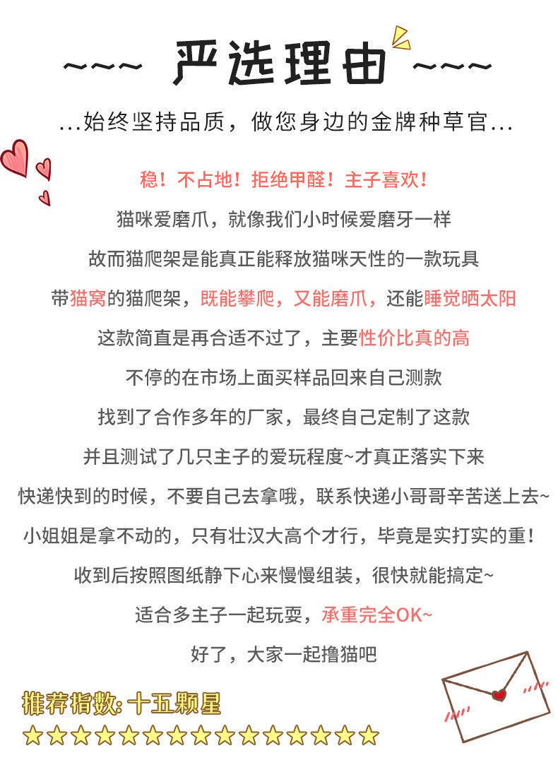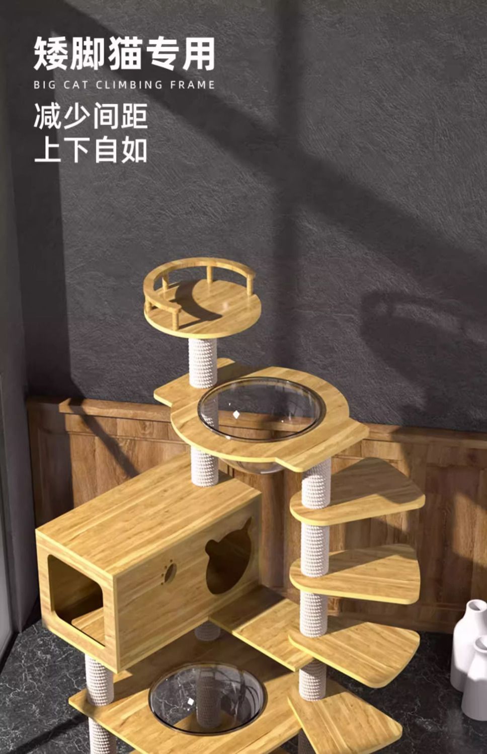 The cat scratch-board and cat bed are integrated, wear-resistant and non-flaking. The solid wood cat climbing frame takes up little space. The sisal pad and cat scratch-pad are cat toys