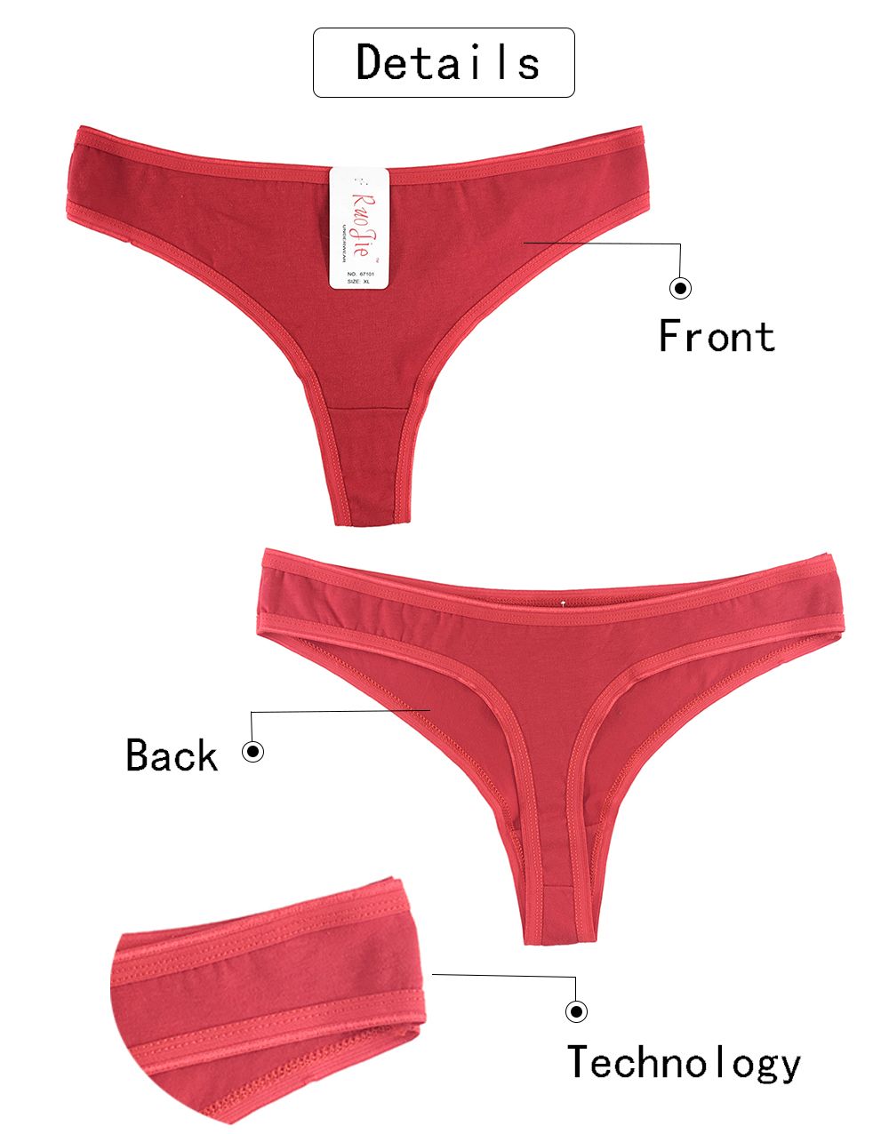 67101 Export to Southeast Asia, Indonesia, best-selling basic style, romantic solid color cotton thong 3 1014