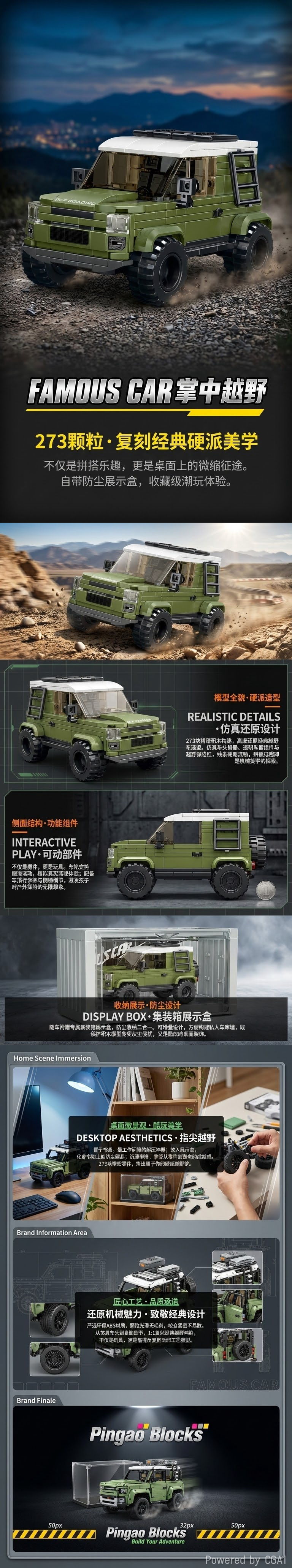 Building block car models, green off-road vehicles, toy car models, children's intelligence