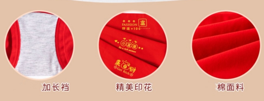 Red zodiac year underwear for women, cotton mid-waist breathable triangular underwear, extended cotton base, skin-friendly and comfortable red underwear