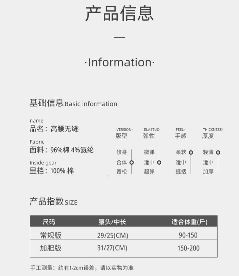 New high-waisted underwear, comfortable one-piece, no side seams, breathable cotton crotch women's underwear, seamless high-waisted shaping underwear