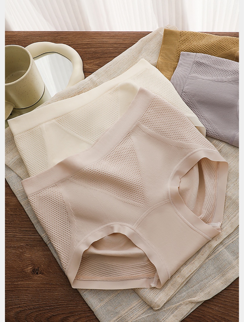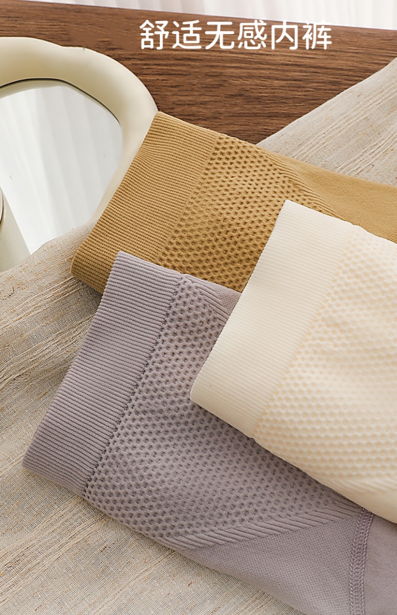 Mid-waist seamless honeycomb cotton crotch underwear, new women's triangle shorts, autumn and winter seamless cotton one-piece underwear