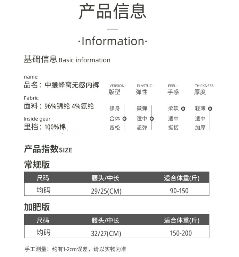 One-piece seamless mid-high waist women's underwear, large-sized triangular shorts, honeycomb skin-friendly breathable cotton crotch underwear