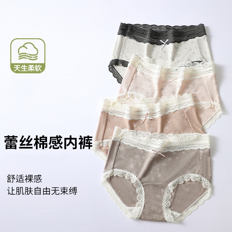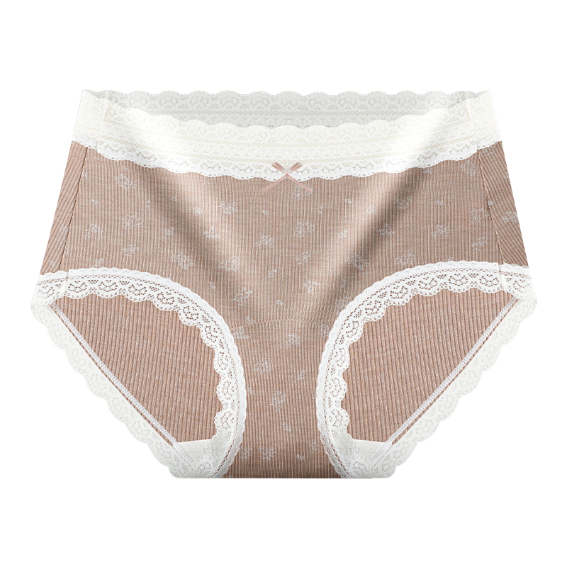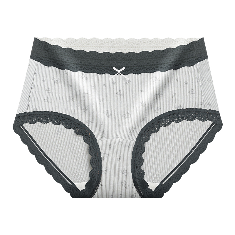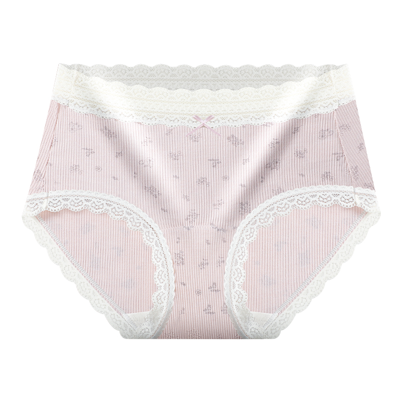 Fresh and pastoral style cotton underwear, high-waisted lace seamless extended cotton crotch underwear, sweet and girlish floral underwear