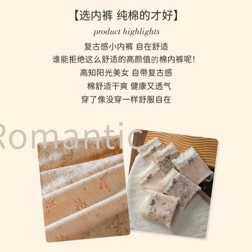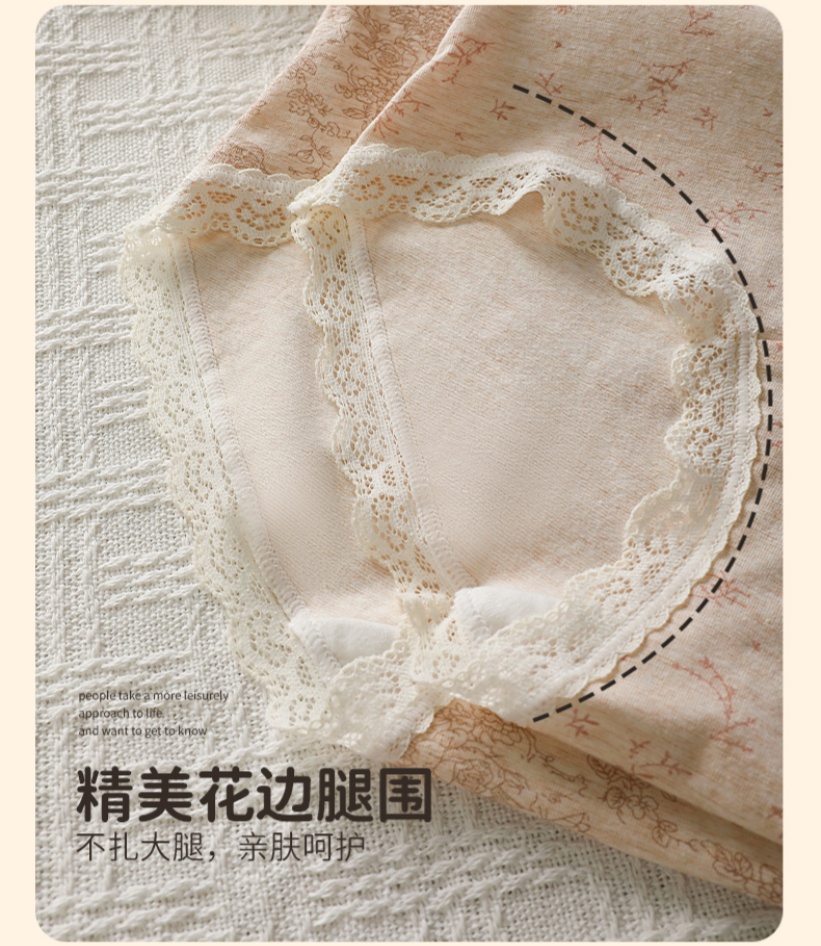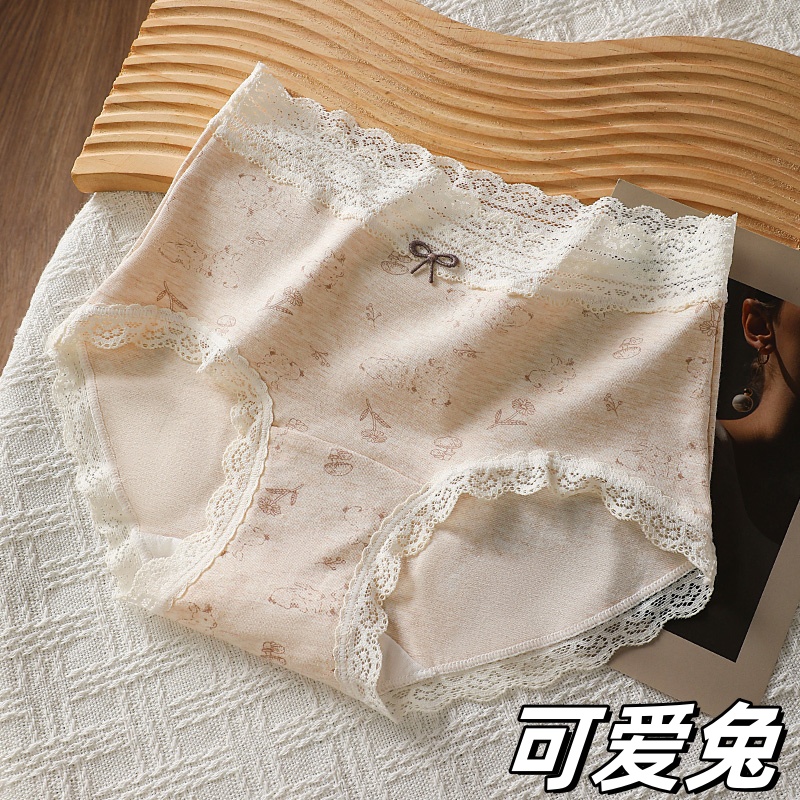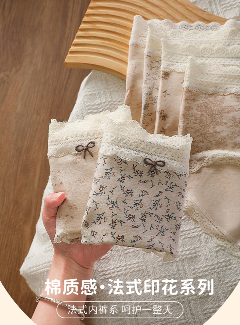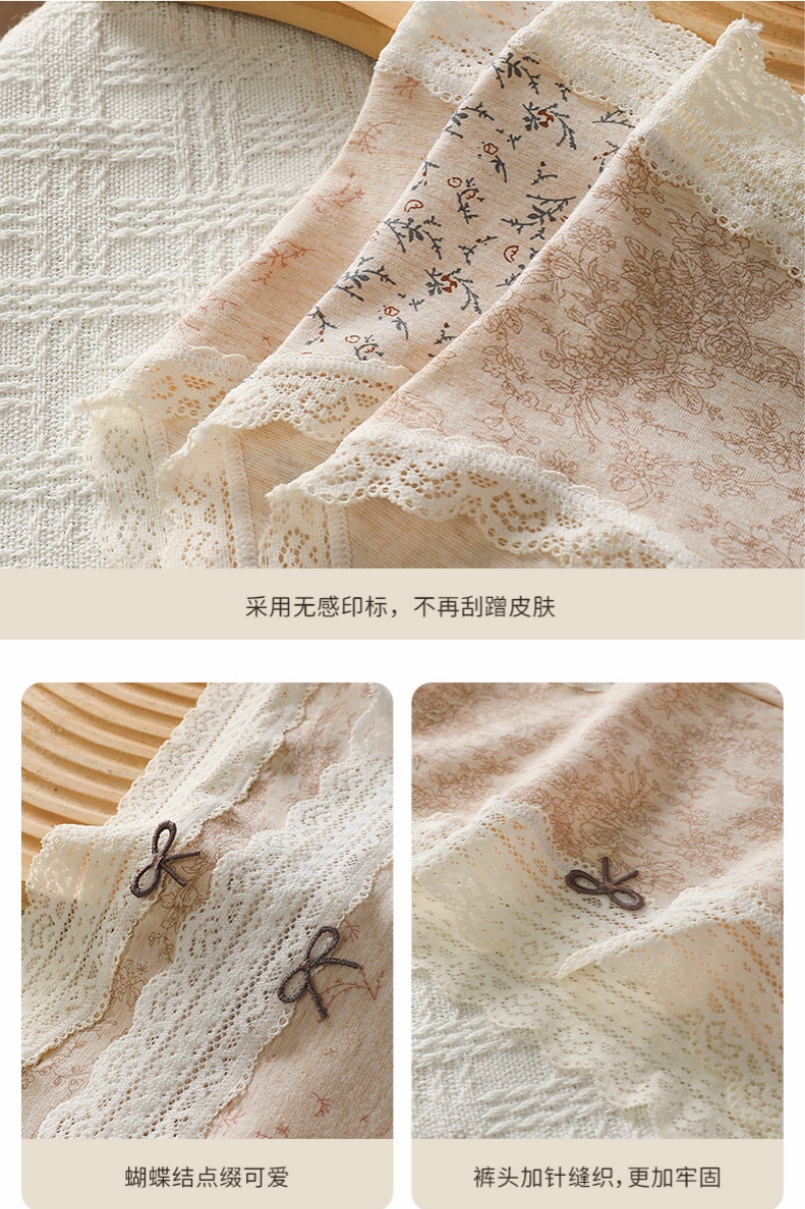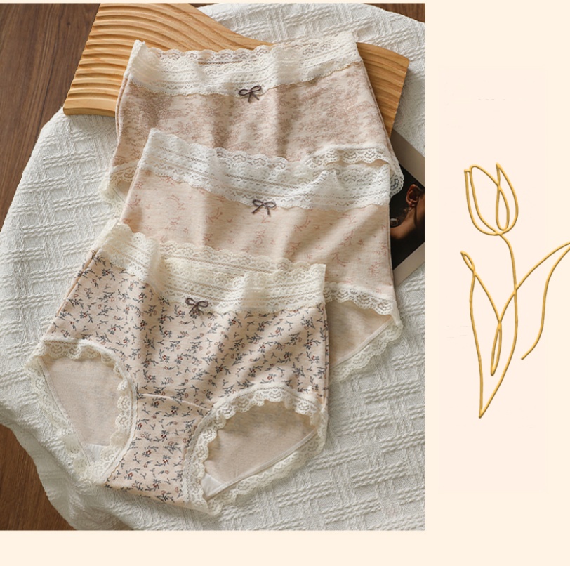 Fresh and pastoral style cotton underwear, high-waisted lace seamless extended cotton crotch underwear, sweet and girlish floral underwear