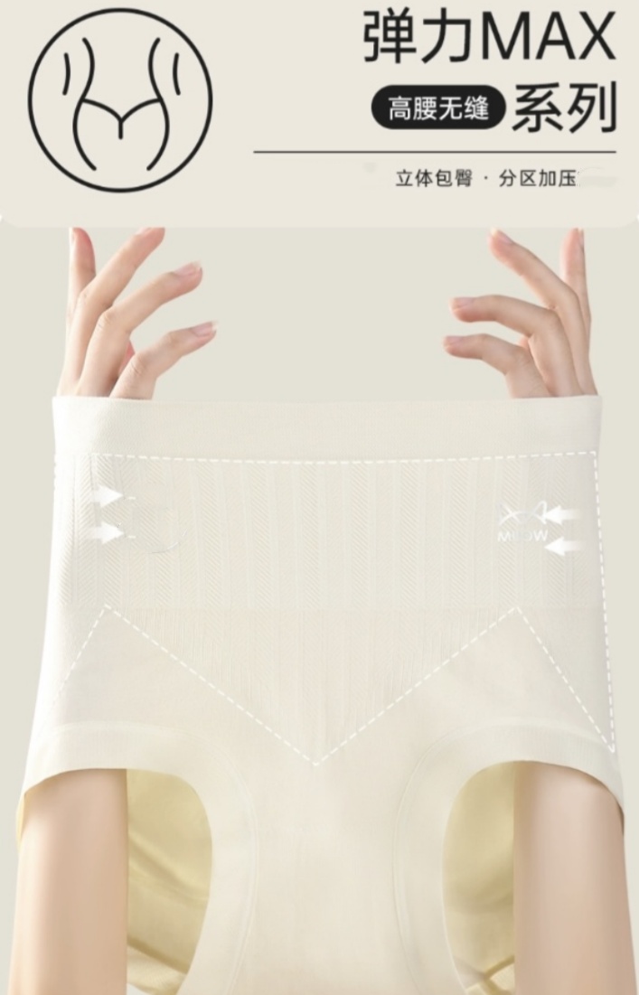 New high-waisted underwear, comfortable one-piece, no side seams, breathable cotton crotch women's underwear, seamless high-waisted shaping underwear