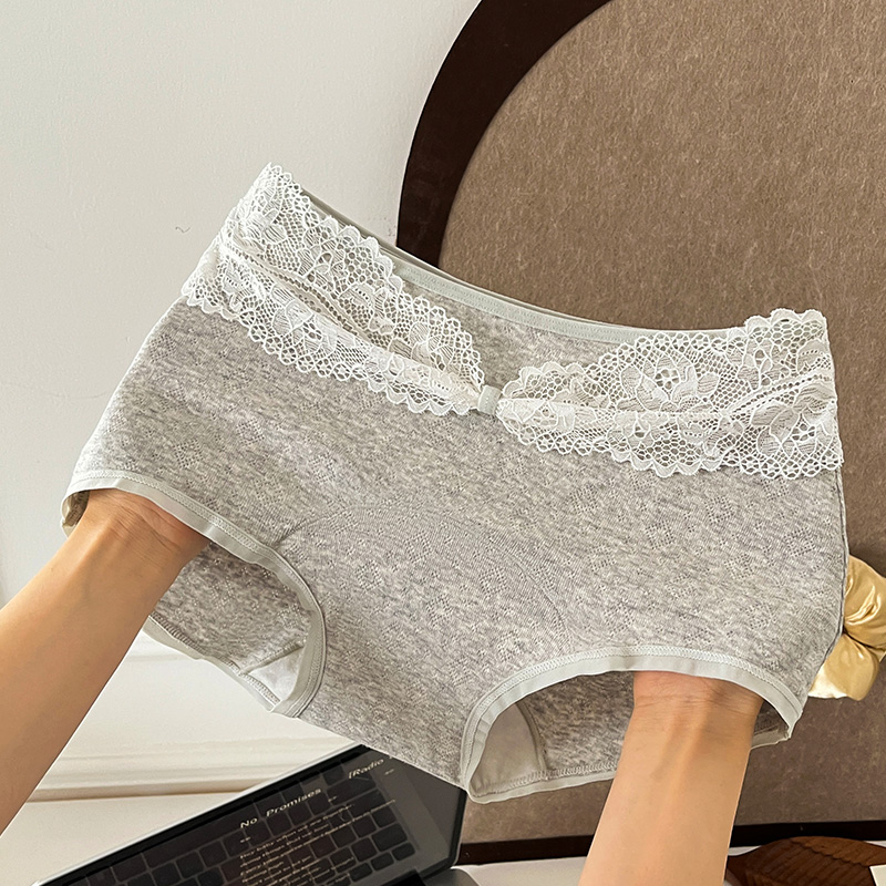 Fresh and pastoral style cotton underwear, high-waisted lace seamless extended cotton crotch underwear, sweet and girlish floral underwear