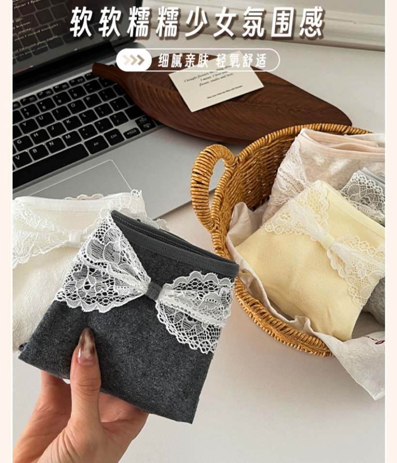 New women's underwear lace lace cotton extended length triangle underwear lace bow breathable cotton high-waisted underwear
