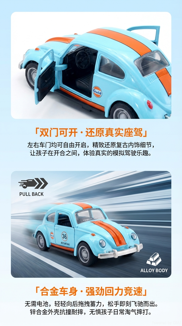 Window box 1:36 double door Beetle Bay Oil Edition alloy car model