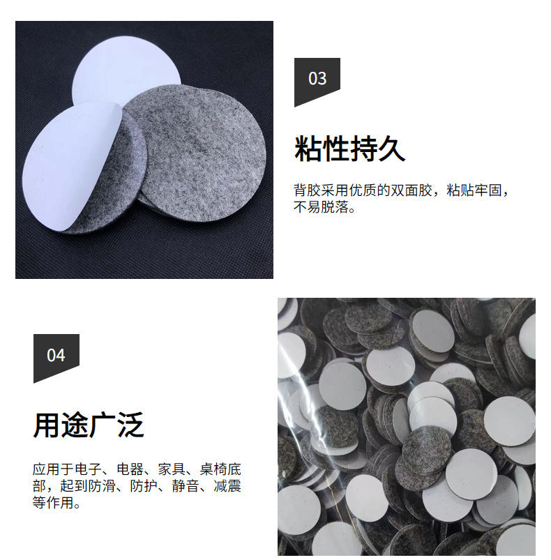 Supply non-woven fabric furniture anti-slip foot pads, table and chair protective silent felt foot pads, self-adhesive felt gaskets