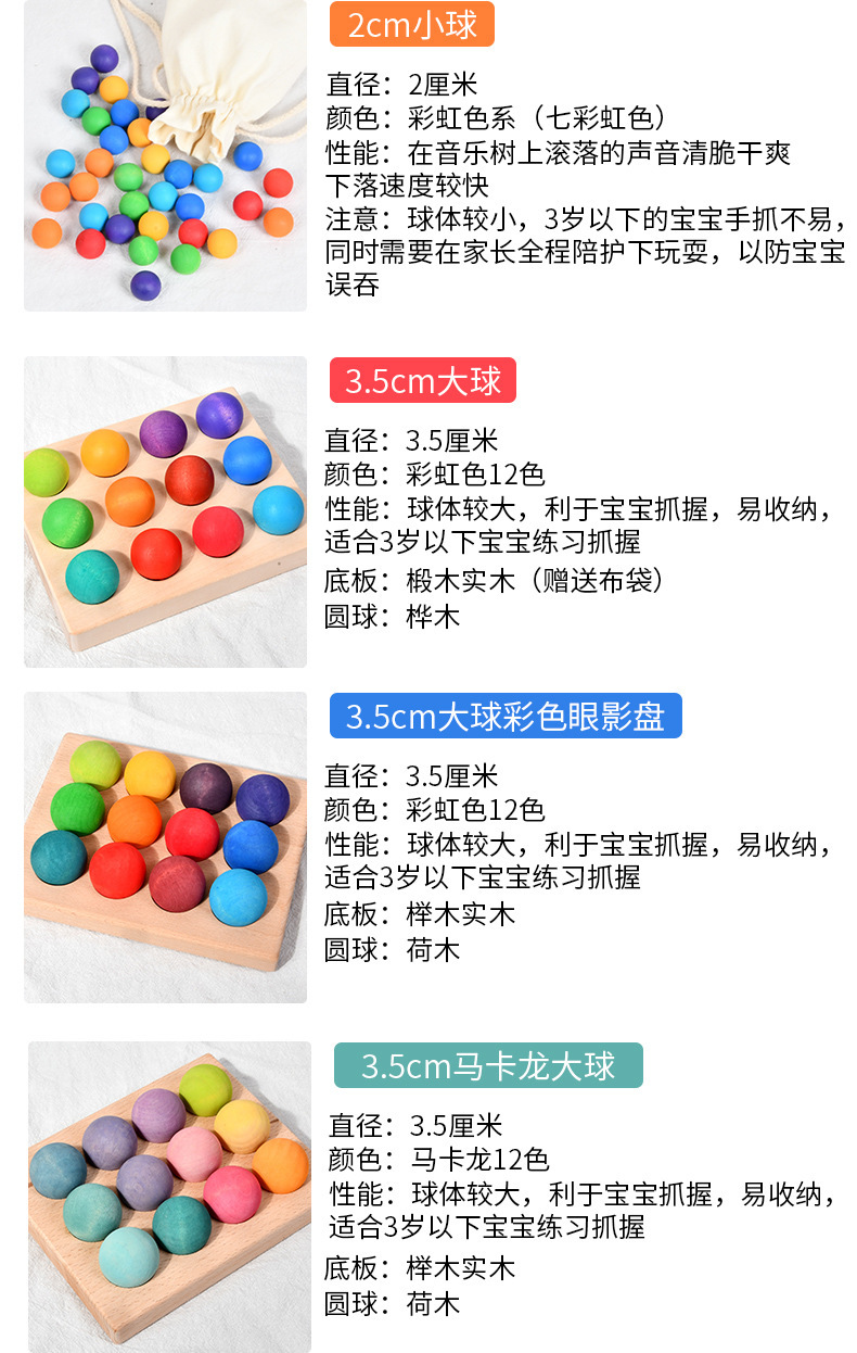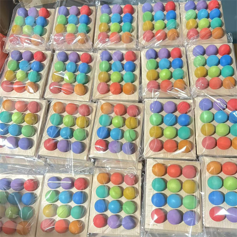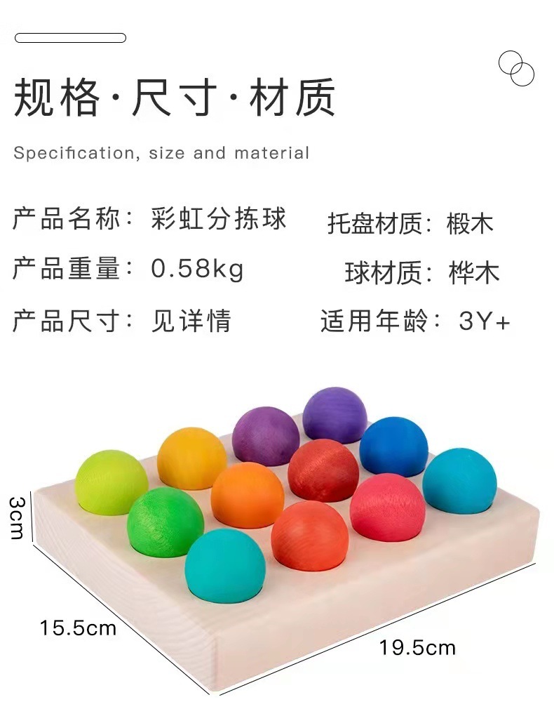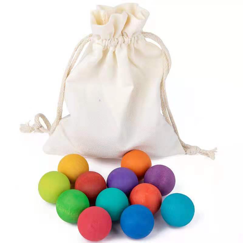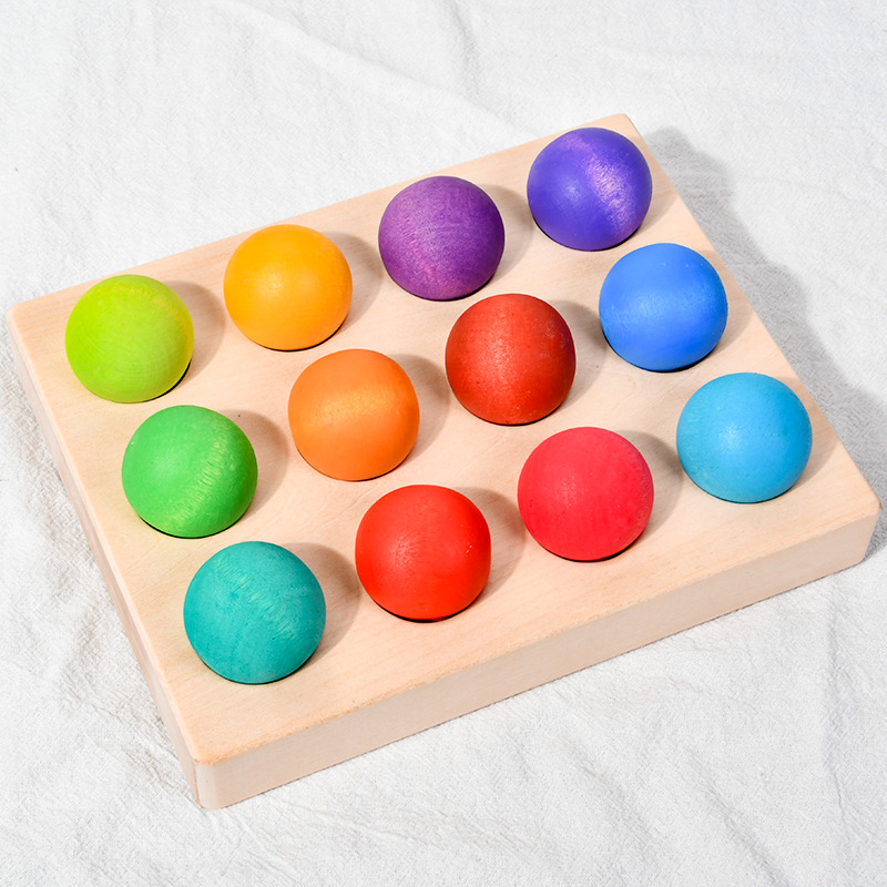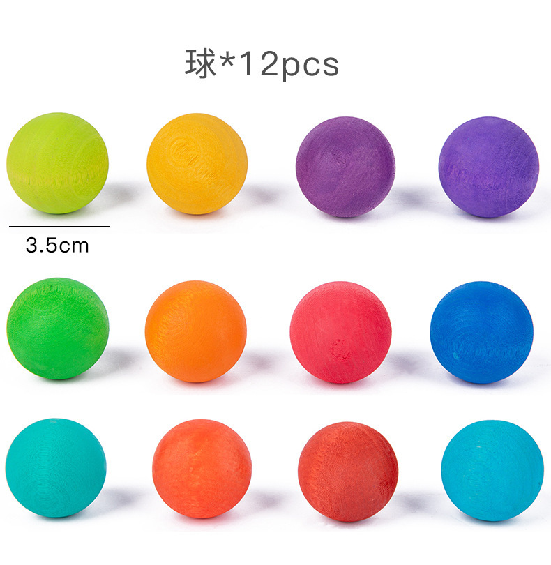 Wooden rainbow balls in 12 colors, Montessori educational AIDS, educational ball toys, children's solid wood building blocks, round balls