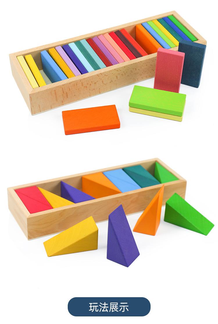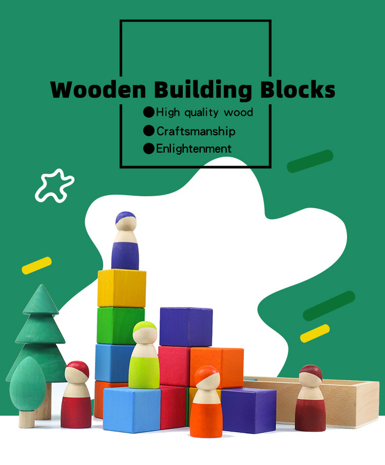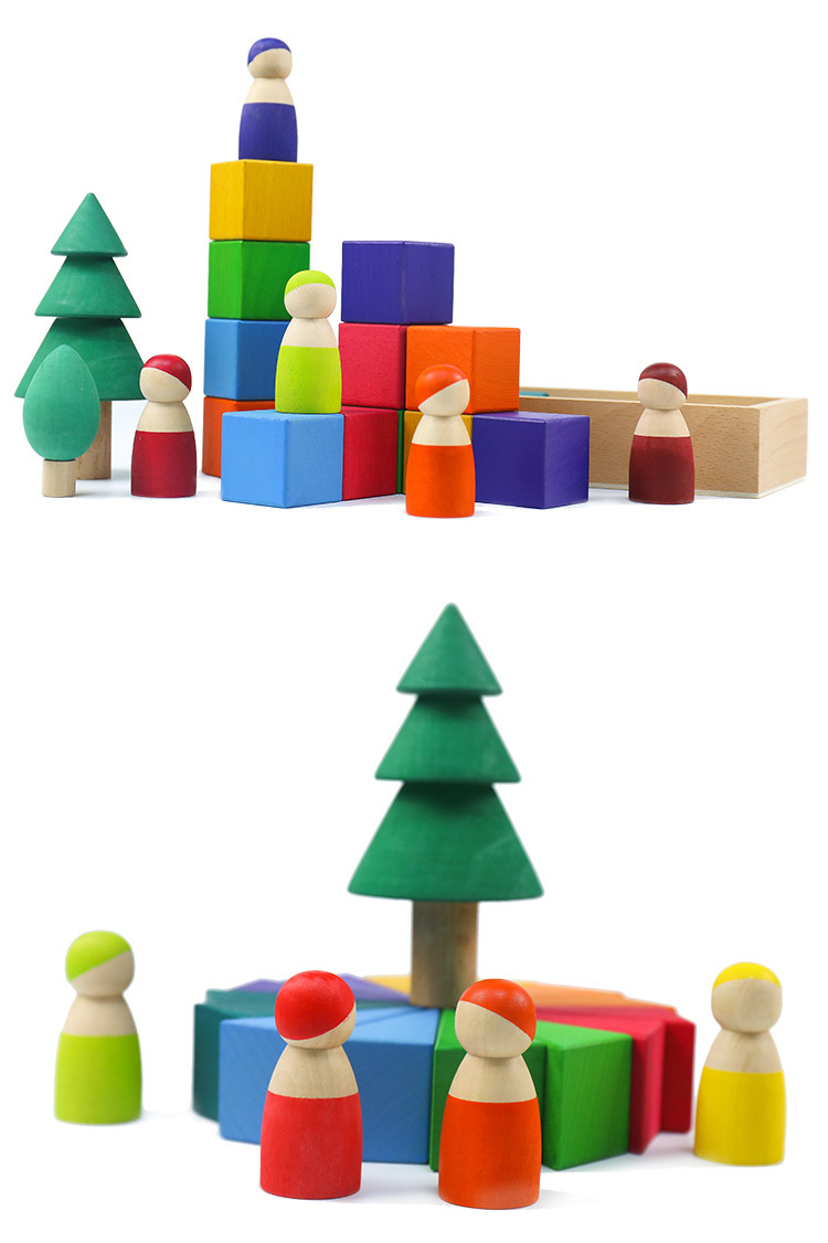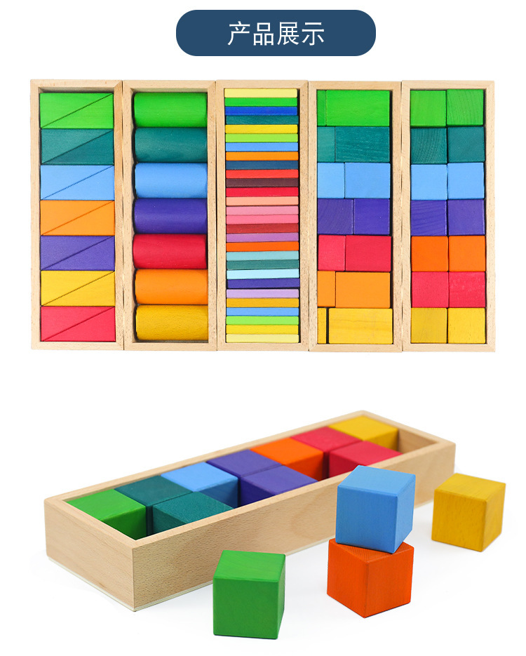 Rainbow geometric building blocks cognitive assembly and stacking educational toys, creative wooden color matching irregularly shaped children's early education toys