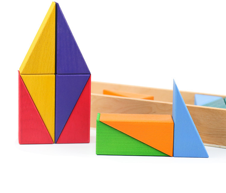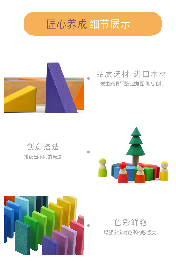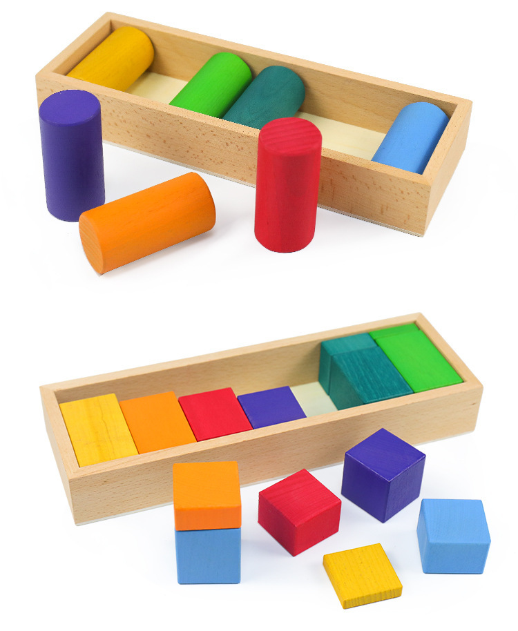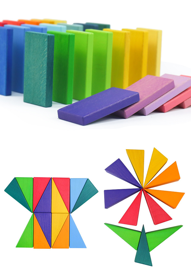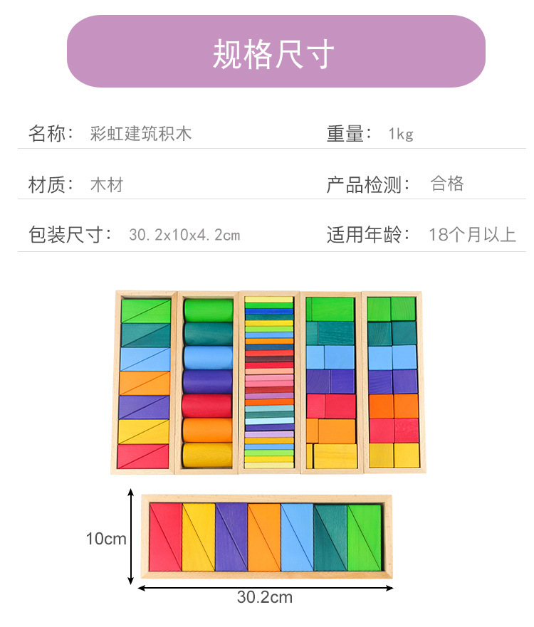 Rainbow geometric building blocks cognitive assembly and stacking educational toys, creative wooden color matching irregularly shaped children's early education toys