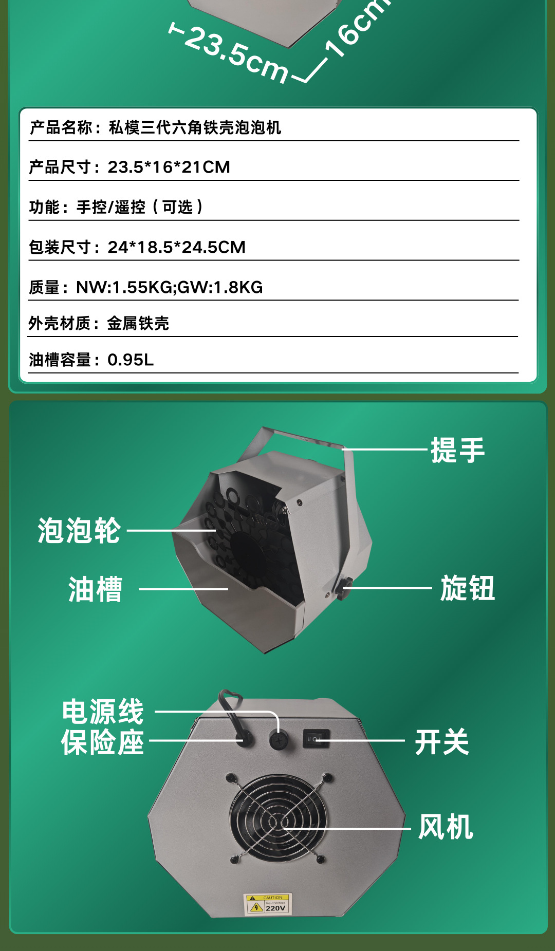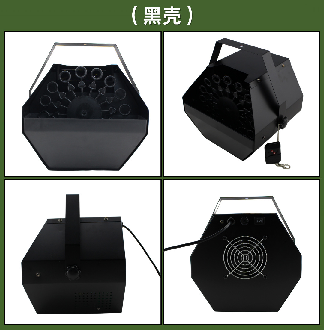 Cross-border exclusive portable private mold hexagonal iron shell remote control bubble machine, wedding party small remote control electric bubble blower, stage performance, bar, shopping mall, Internet celebrity atmosphere, high-end special effect bubble machine