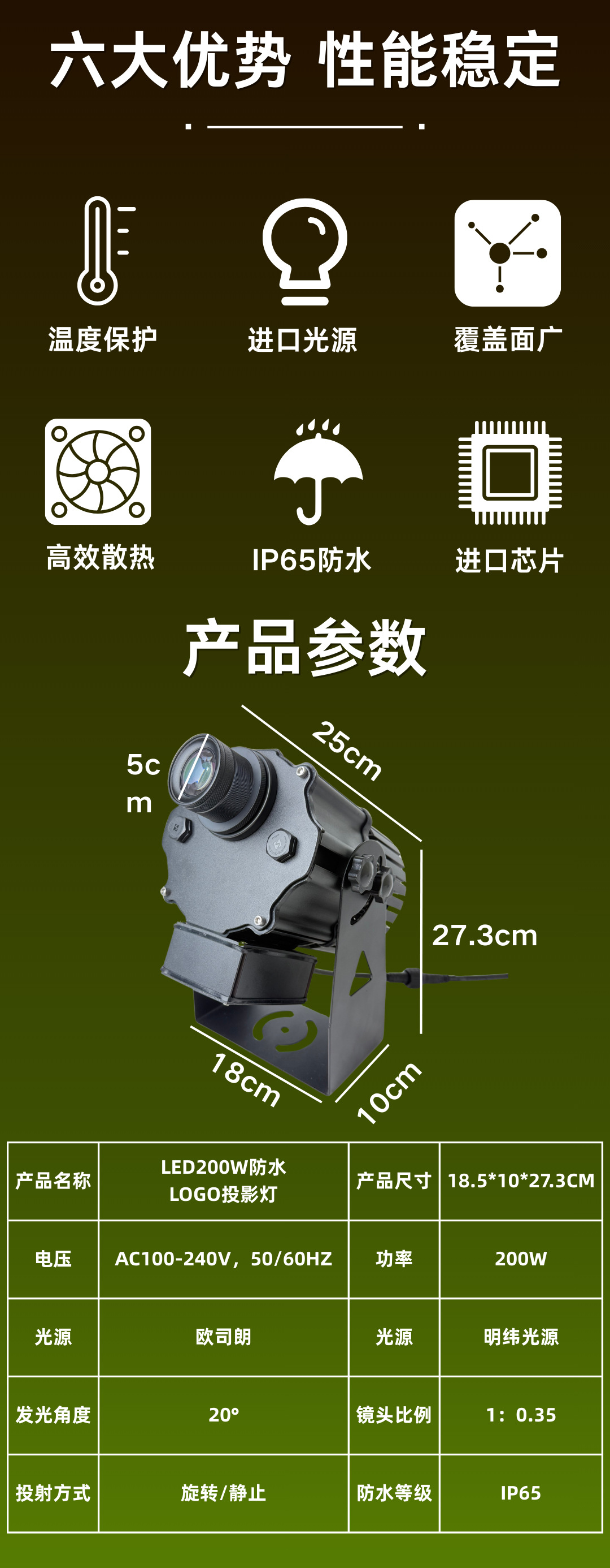 200W waterproof dynamic rotary logo light, outdoor high-definition pattern and text projection equipment, commercial exhibition brand logo lighting fixtures, special equipment for advertising and traffic diversion projection in popular street areas